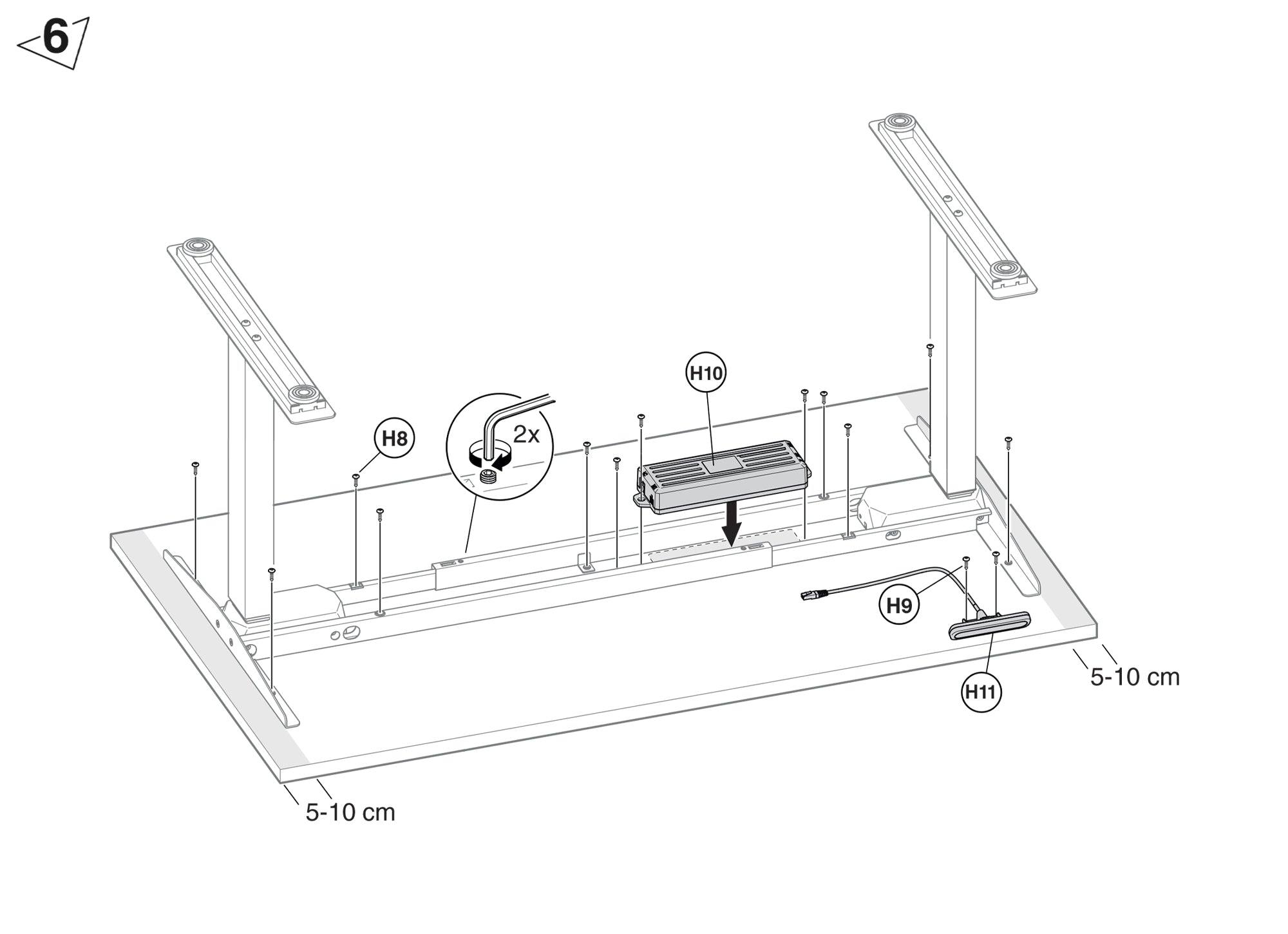 T-postolje je vrlo čvrsto i tiho prilikom podešavanja visine. Funkcija zaštitnog mehanizma otkriva zapreke kada se stol spušta ili podiže te brzo reagira kako bi zaustavio daljnje pomicanje okvira. Tako se produžuje vijek trajanja radnog stola i ostale uredske opreme.