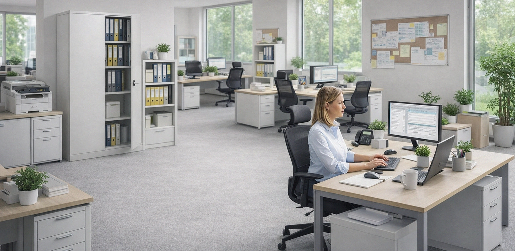 Prostrani ormar za organizirano i učinkovito spremanje! Ormar ima dovoljno prostora za pladnjeve, kutije za spremanje i druge predmete, velike i male, koje želite sigurno spremiti. Za skladišta i urede.