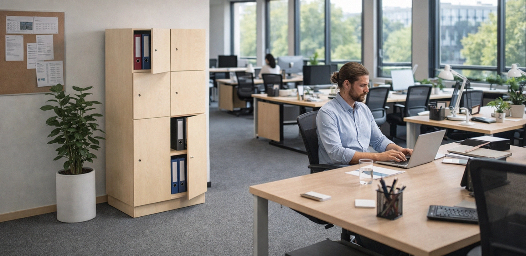 Želite više prostora za spremanje? Namještaj QBUS je izrađen tako da odgovara ostalom namještaju, a zahvaljujući modularnom načinu slaganja možete sastaviti svoj prostor za spremanje. Sve će to pomoći da vaš radni dan bude učinkovitiji!