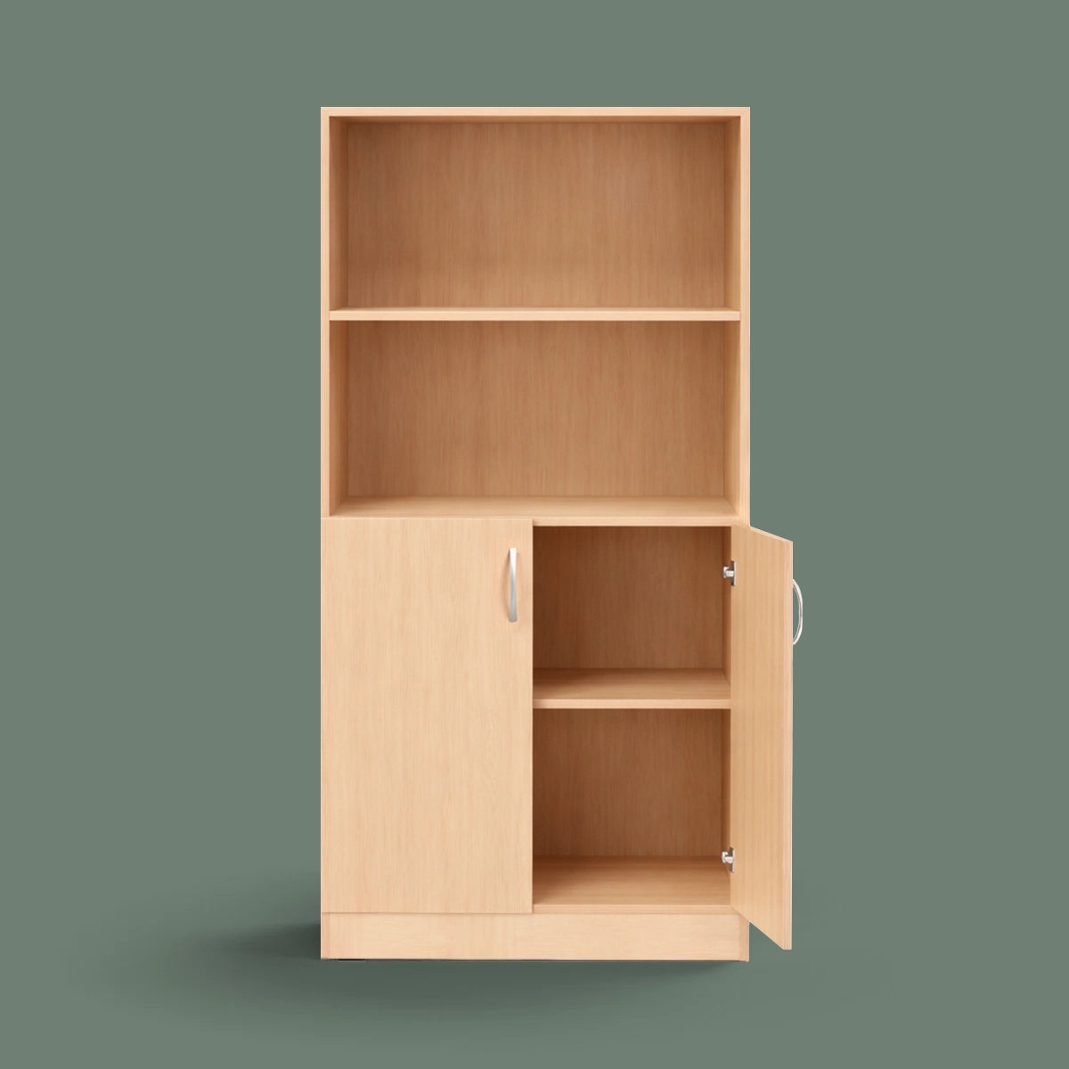 Klasičan ormar od izdržljivog laminata s četiri police i djelomično skrivenim spremištem s dvostrukim vratima. Ormar nudi pohranu za dvanaest A4 registratora na svakoj polici, što ga čini idealnim za urede, recepcije i škole.